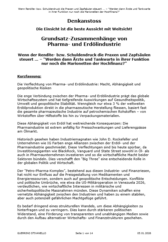 Grundsatz-Zusammenhänge von Pharma- und Erdölindustrie!