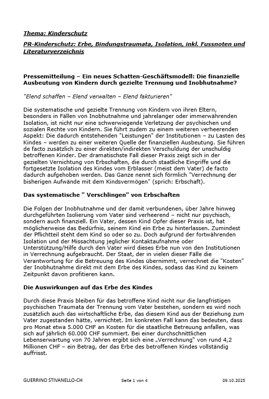 Die finanzielle Ausbeutung von Kindern durch gezielte Trennung und Inobhutnahme?