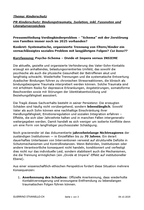 Systematische, organisierte Trennung von Eltern/Kinder ein vernachlässigtes soziales Problem mit langjährigen Folgen?