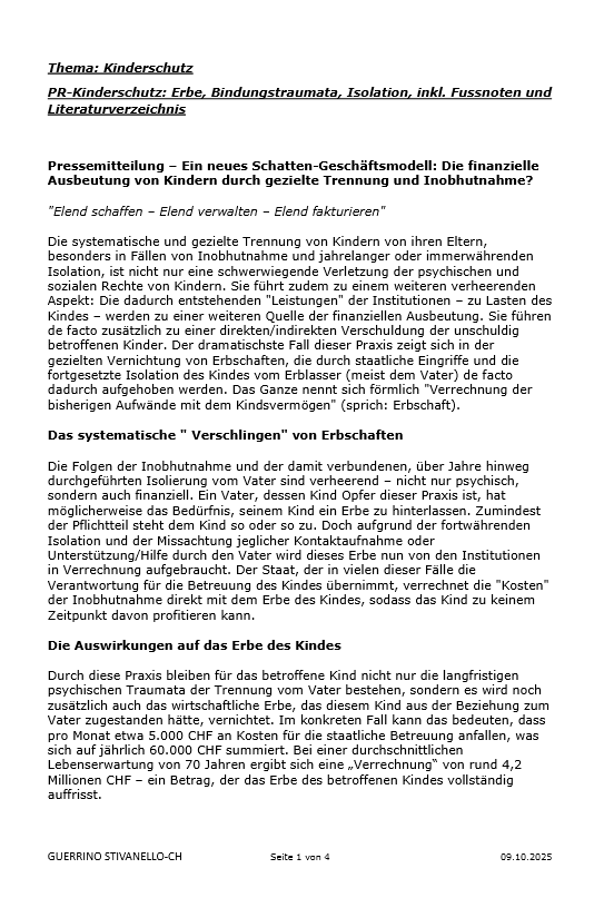 Die finanzielle Ausbeutung von Kindern durch gezielte Trennung und Inobhutnahme?
