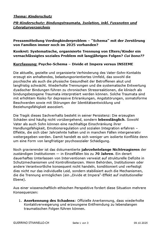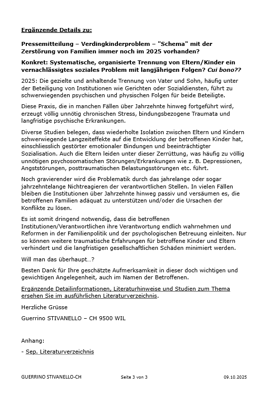 Verdingkinderproblem – "Schema" mit der Zerstörung von Familien immer noch im 2025 vorhanden?