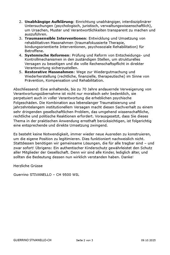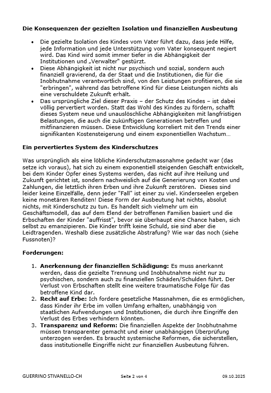 Inobhutnahme, Bindungstraumata, Isolation, Physische/Psychische Gewalt und ihre Folgen, Kindesentfremdung, institutionelle Vernachlässigung, systemische Reaktionen, Geschäftsmodell/Kinderschutz, Erbe, allgemeine praktische Ergänzungen.